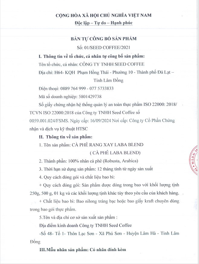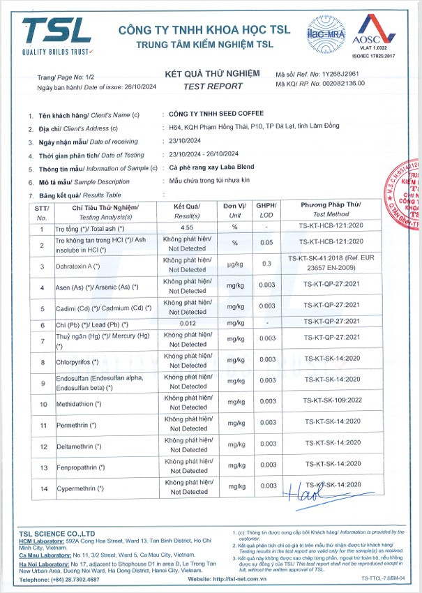 Phối trộn 100% hạt cà phê Arabica Cầu Đất Đà Lạt và hạt Robusta Sẻ trồng tại vùng đất Laba (Phú Sơn – Lâm Hà) với tỷ lệ phối trộn hoàn hảo, giữ lại trọn vẹn hương vị chân thực trong từng mẻ cà phê.